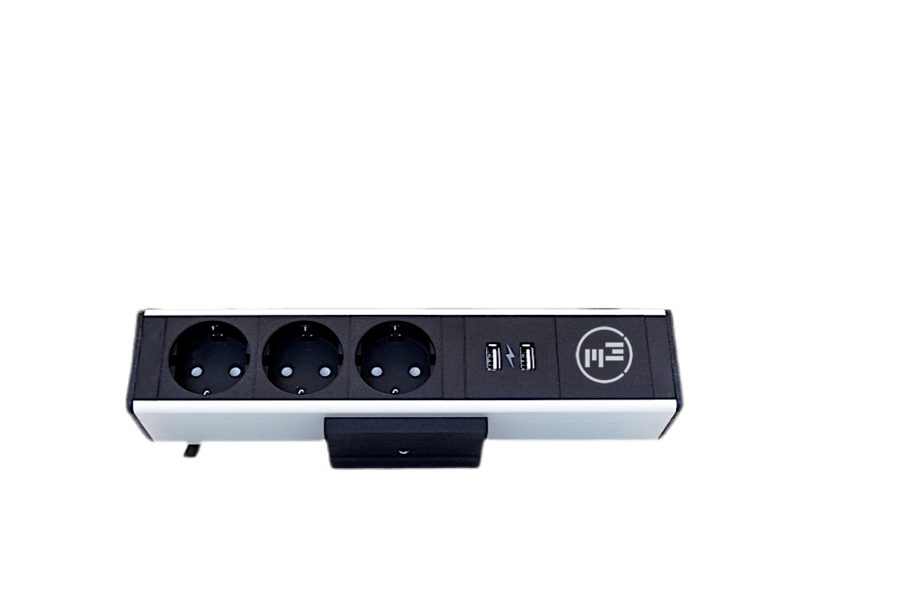 Die Auftischsteckdose mit verschiedenen Anschlussmöglichkeiten: Neben 2er-Steckdosenleisten, 3er Steckdosenleisten gibt es individuelle Inlays, wie z.B. USB-A und USB-C, HDMI oder Lan-Einbauten.